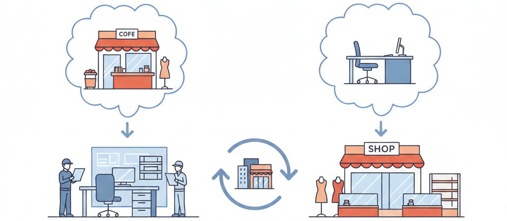 「新しくお店を開きたいけど、事務所として使われていた物件でも大丈夫?」「手持ちの貸事務所を店舗として利用したいけど、何か注意点はある?」事業の形態が多様化する現代において、テナントや物件の用途変更を検討するケースが増えています。しかし、それぞれの用途には法的な要件や設備面で大きな違いがあり、事前に確認を怠ると高額な工事費用やトラブルに発展する可能性があります。