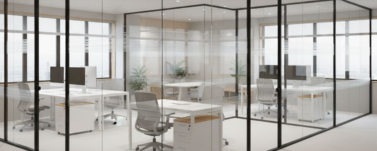 視線を完全に遮断するパーテーションは空間を狭く感じさせる原因になります。透明や半透明の素材を選べば、エリア分けの効果を保ちつつも光や視線を通せるため、圧迫感を大幅に軽減できます。来客スペースなど外部の人が出入りする場所でも、開放的な雰囲気を損なわずに機能性を確保できるのが利点です。