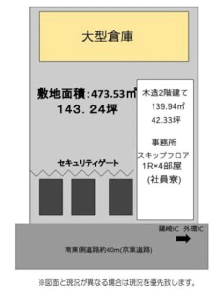 | ビル設備の備考 | 車両10台以上可/事務所42.32坪の他に大型倉庫(約30坪)付 |
