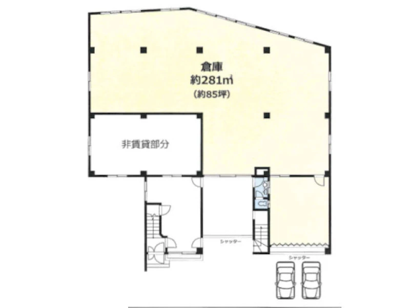 | 担当者コメント | 坂井倉庫 1階は、京成押上線「八広」から徒歩5分の貸倉庫です 。駅から徒歩圏内で、通勤の利便性に優れています 。1階部分で85坪の広さがあり、駐車場は軽自動車2台が駐車可能です 。トイレを完備しています。 |