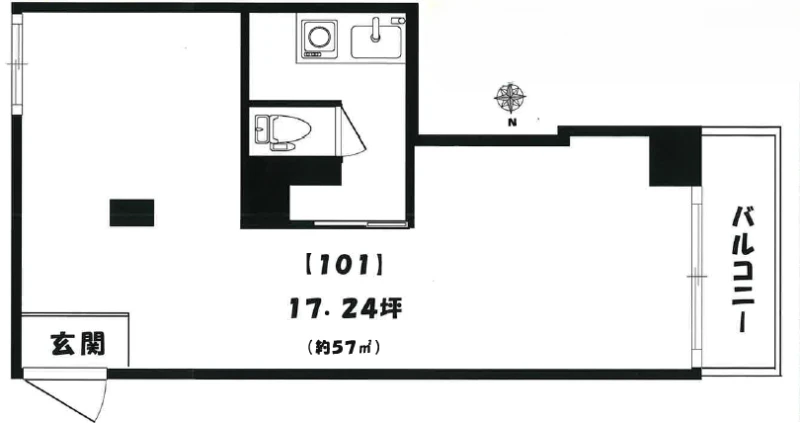| 建物名 | ニュー野村マンション 1階 101号室 (17.24坪) |