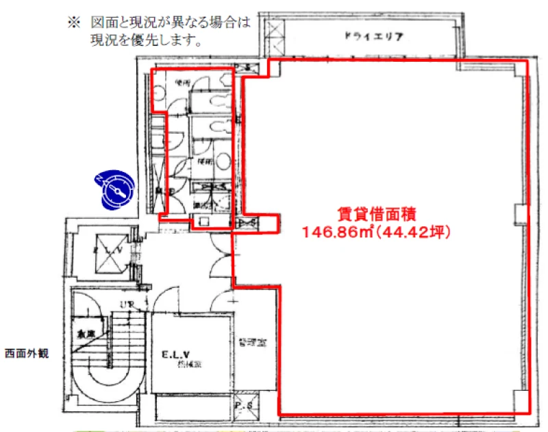 | 事務所内装の備考 | 天井高:2,400mm/OAフロア未設置、設置対応可/照明 LED管球に更新 |