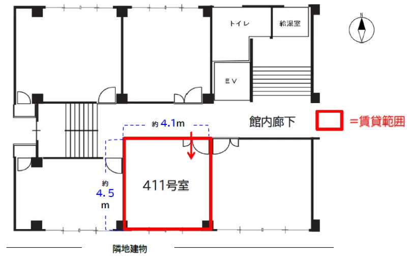 | 建物名 | OMビル 4階 411号室 (5.58坪) |