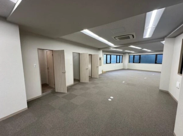 1992年竣工の7階建て物件で、室内は天井高2.5m以上の開放的な空間が広がります。 男女別トイレやエレベーター、ビルトインエアコンを完備し、土日・祝日の利用も可能です。 光ファイバーや防犯カメラなど、ビジネスに欠かせない設備も充実しています。