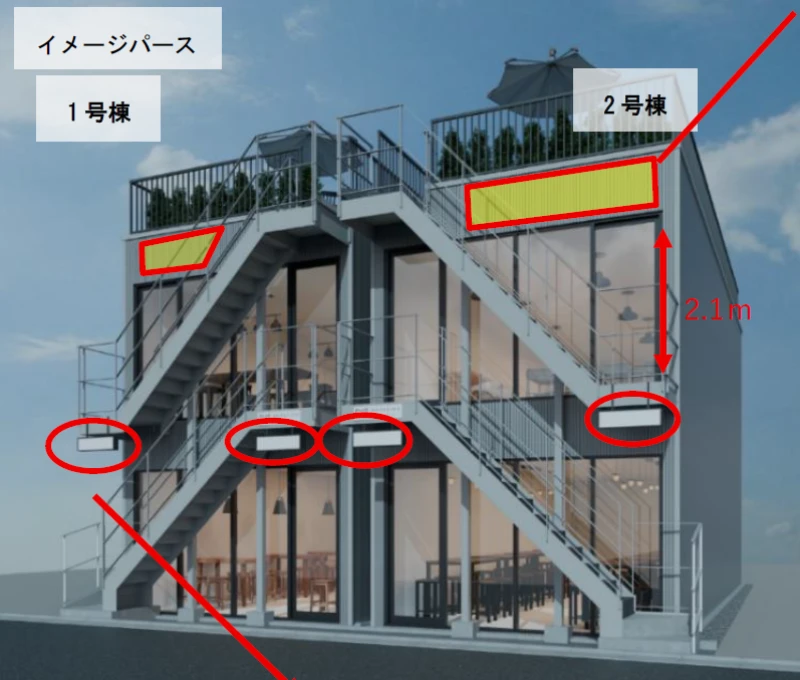 | ビル設備の備考 | 各階看板利用可能/2階テナントのみ屋上看板利用相談可/インフラ:ガス 各階 10号・電灯 各階 75A・動力 各階 50A/事務所仕様の引き渡し相談可 |
