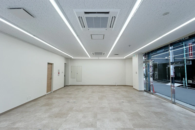 視認性の高い1階区画で、看板設置も可能なため、集客を重視するビジネスにも最適です。トイレ、エアコン、エレベーターを完備しており快適にご利用いただけます。