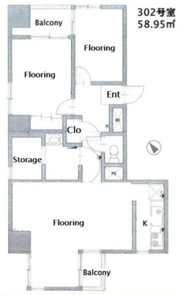| 坪数(平米) | 17.83 坪(58.95 ㎡) |
