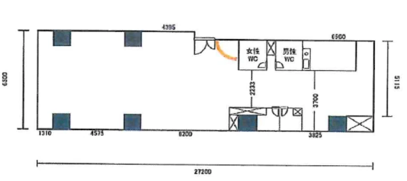 | 事務所内装の備考 | 現在の造作品は撤去予定。残るものは天井・壁の下地・床のPタイル・残置の空調4基・トイレ・洗面。 |