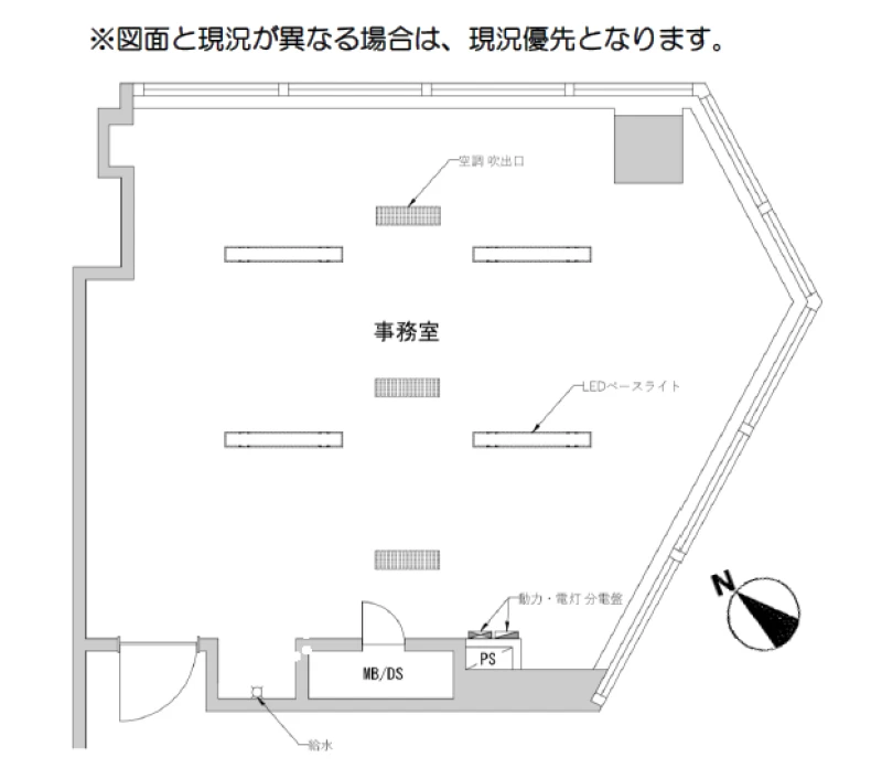| 事務所内装の備考 | 室内の窓の開閉不可/洗面設備なし(給排水あり) |