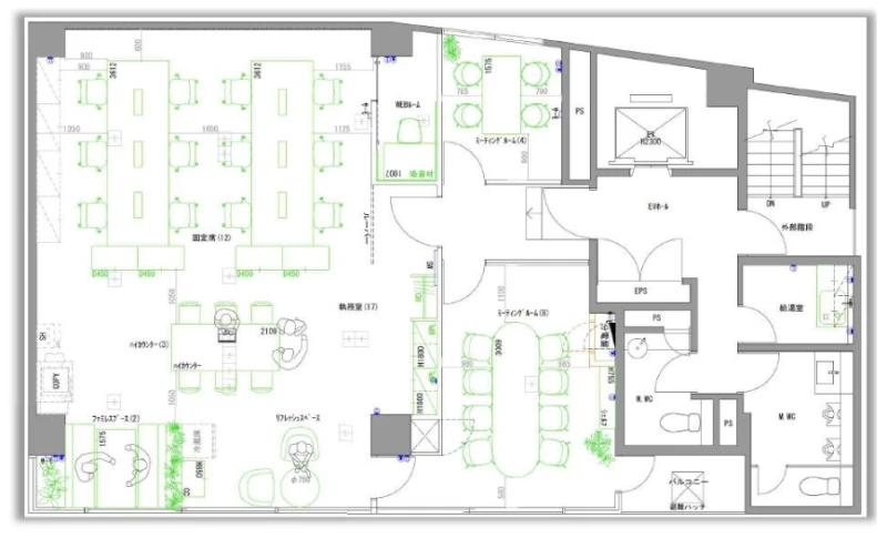 | 事務所内装の備考 | 会議室×2(4名用・8名用)/WEB会議ROOM×1/執務室22席/ファミレスBooth/フローリング床/Wi-Fi設置済み※通信速度を確約するものではありません。通信環境は必要に応じて入居者様にてご手配ください。 |