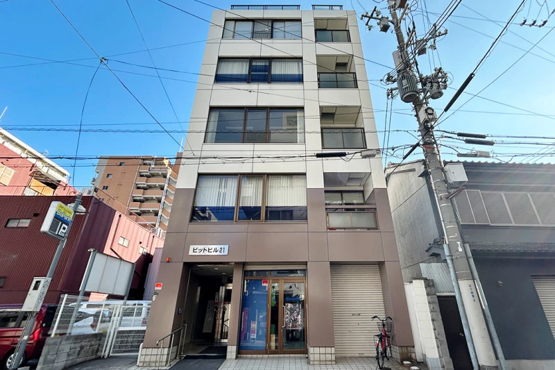 ビットビル21(3階 301号室)は、大阪メトロ堺筋線「南森町」から徒歩3分のコンパクトオフィス・貸事務所です。約12坪の室内は、設置済みの間仕切りなどを活用できるため、初期のレイアウトコストを抑えたい方に適しています。1階エントランスは夜間および日曜終日がオートロックとなり、セキュリティ面も安心です。トイレやエアコン、エレベーターを完備しており快適にご利用いただけます。