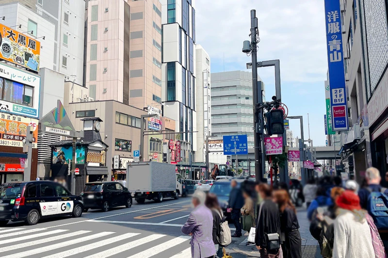 「人型アイコン」を地図上にドラッグすることで『Google ストリートビュー』に切り替わります。