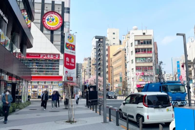 「人型アイコン」を地図上にドラッグすることで『Google ストリートビュー』に切り替わります。
