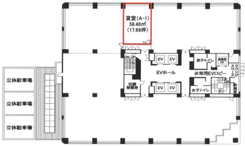 | 建物名 | パシフィックマークス横浜イースト 2階 A-1 (17.69坪) |