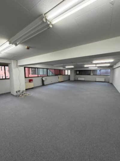 ニュープラザビル 6階 609号室は、大阪メトロ谷町線「東梅田」から徒歩8分の小規模オフィス・貸事務所です。約30坪の広々としたワンフロアで、現状渡しでの引き渡しとなります。共益費が無料のため、月々のランニングコストを抑えられる点が大きな魅力です。駐車場も完備されており、お車を利用するビジネスにも適しています。トイレやエアコン、エレベーターを完備しており快適にご利用いただけます。