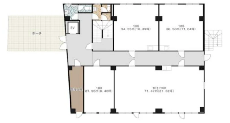 | 建物名 | 佐伯池袋ビル 1階 101・102号室 (21.62坪) |