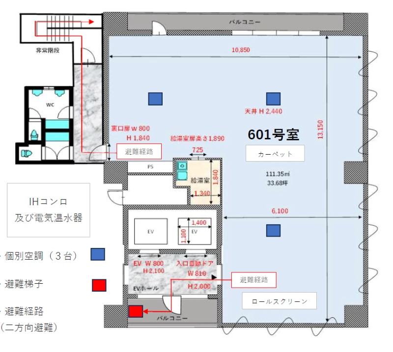 | 建物名 | 福岡GOAビル 6階 601号室 (33.68坪) |