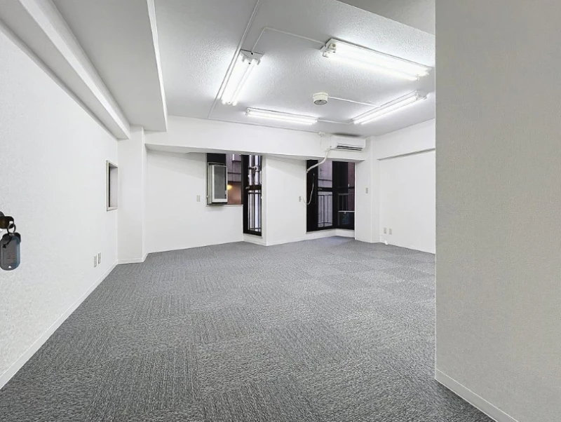 室内は事務所仕様にリフォームされており、無駄のない9.15坪のコンパクトな空間です。エアコンやトイレも完備しており、すぐに業務をスタートできます。夜間オートロックと管理人常駐で、セキュリティ面も安心です。