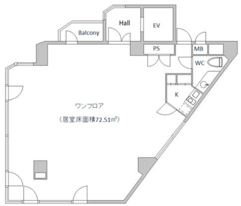 広さは26.67坪で、創業期のベンチャー企業様や、都心に支店を構えたい中小企業様に最適なコンパクトオフィスです。トイレ、エアコン、エレベーターを完備しており快適にご利用いただけます。