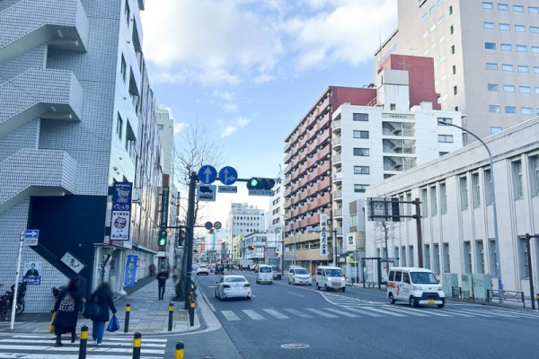 「人型アイコン」を地図上にドラッグすることで『Google ストリートビュー』に切り替わります。