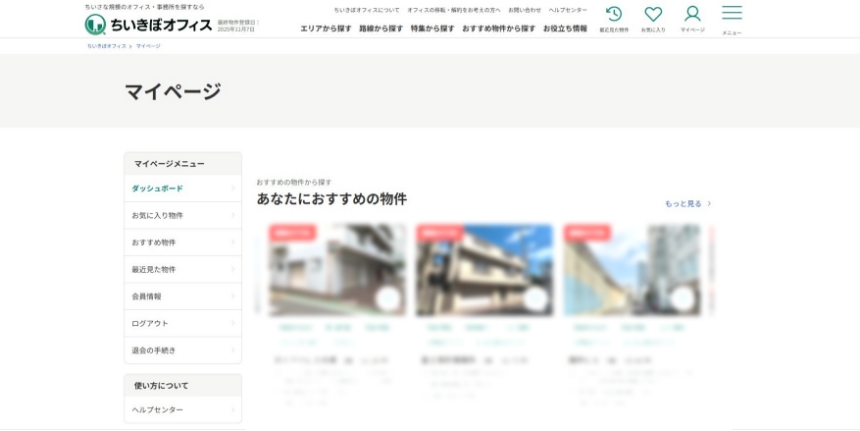 マイページでは、お気に入り登録物件や、お気に入り登録物件を基にしたおすすめ物件などをご確認いただけます。