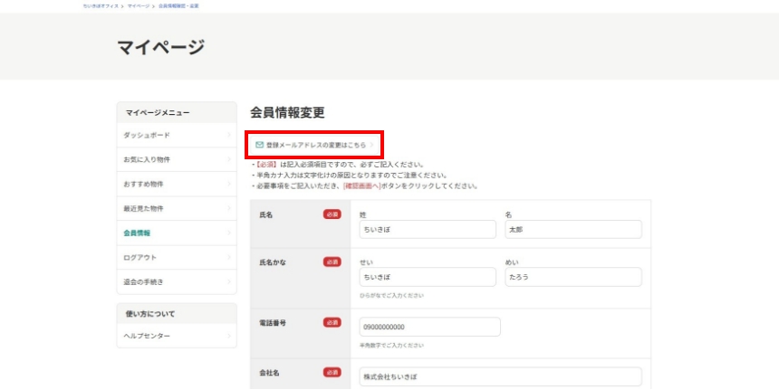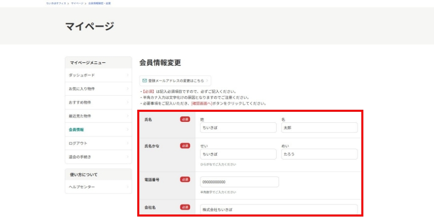 ご登録いただいた会員情報は、マイページからいつでも変更できます。オフィス移転や事業拡大に伴う希望エリア・条件の変更も簡単に行えます。