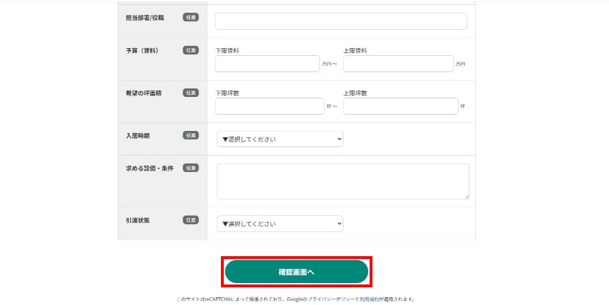 「詳細な条件など」の欄に、物件の具体的な希望条件やご相談内容をご記入いただくと、当社からのご案内がよりスムーズになります。