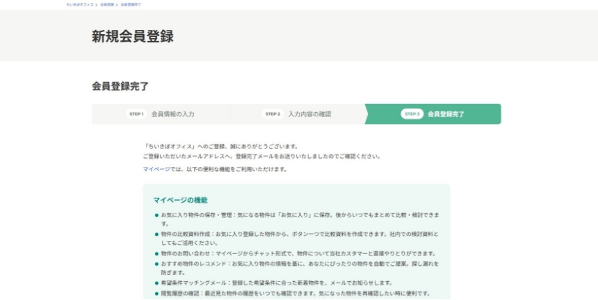 会員登録完了ページが表示されましたら、手続きは完了です。