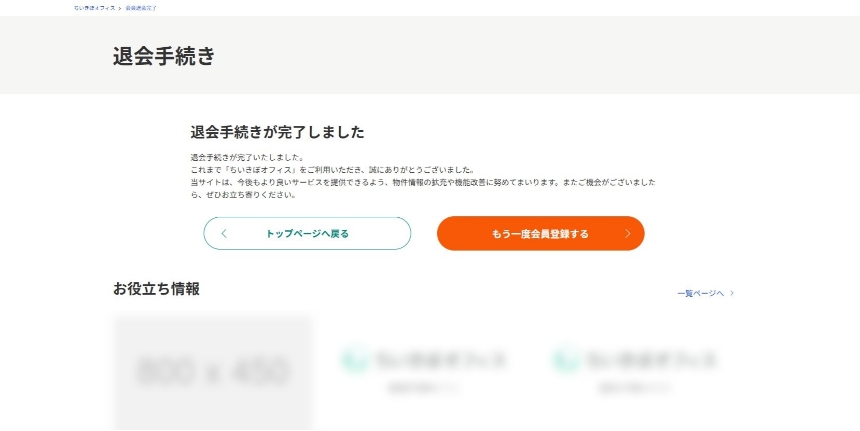こちらで退会手続きが完了します。